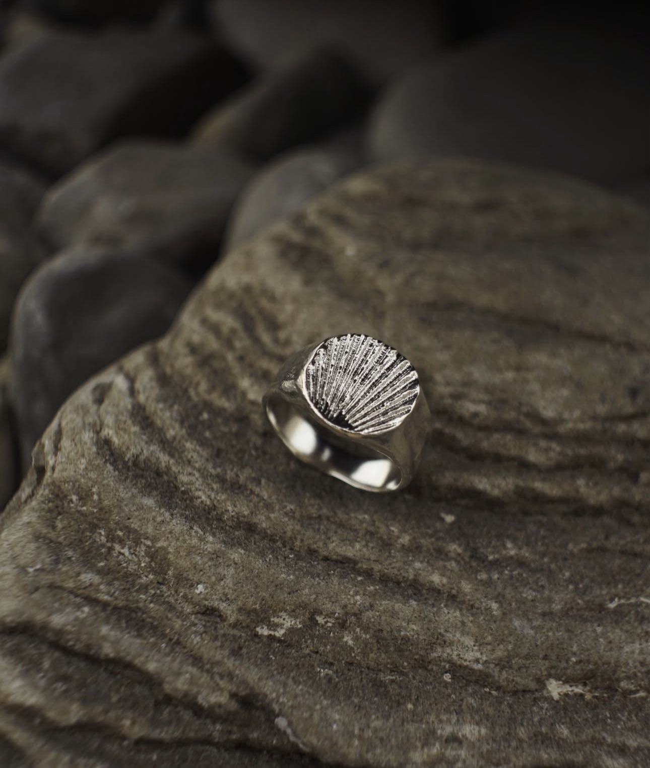 кольцо большая печатка ракушка