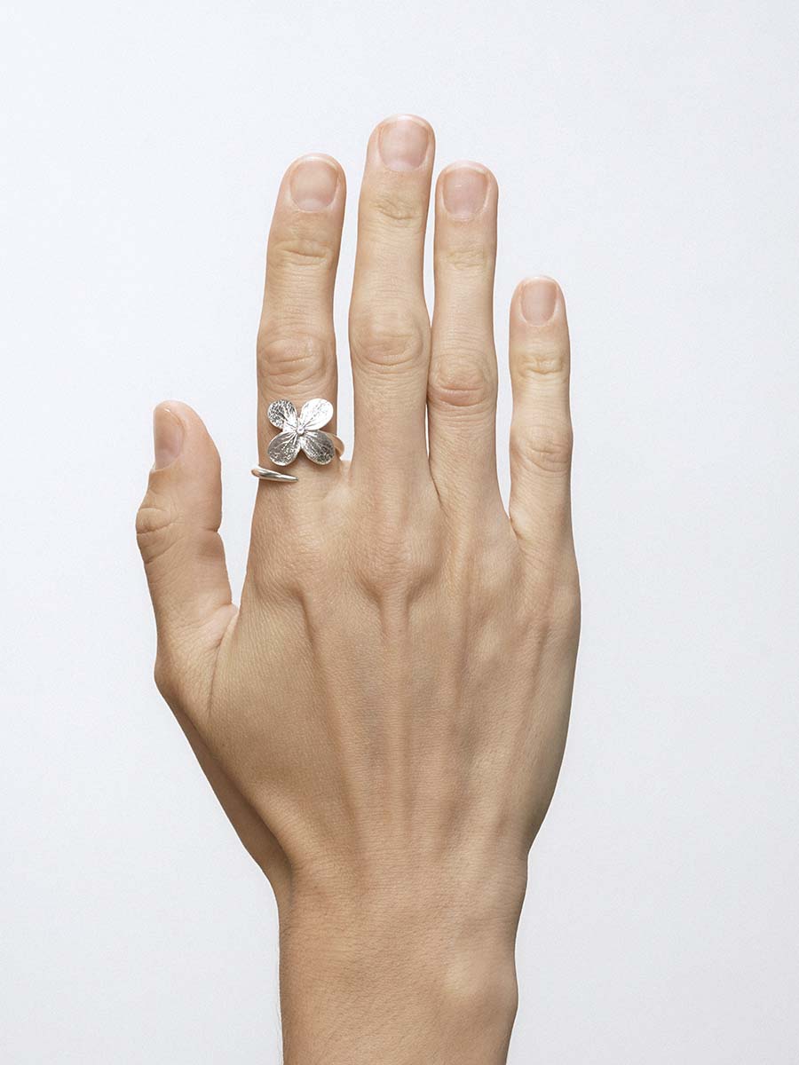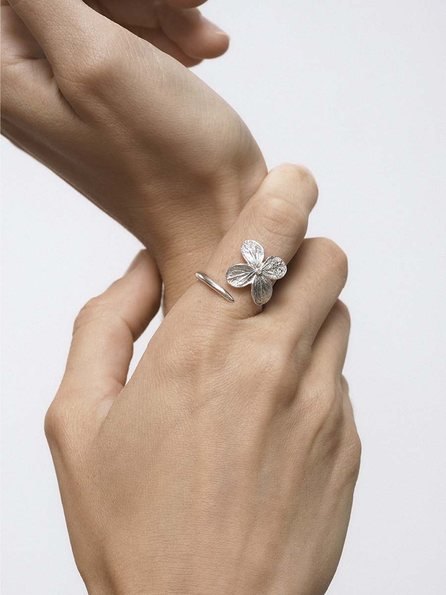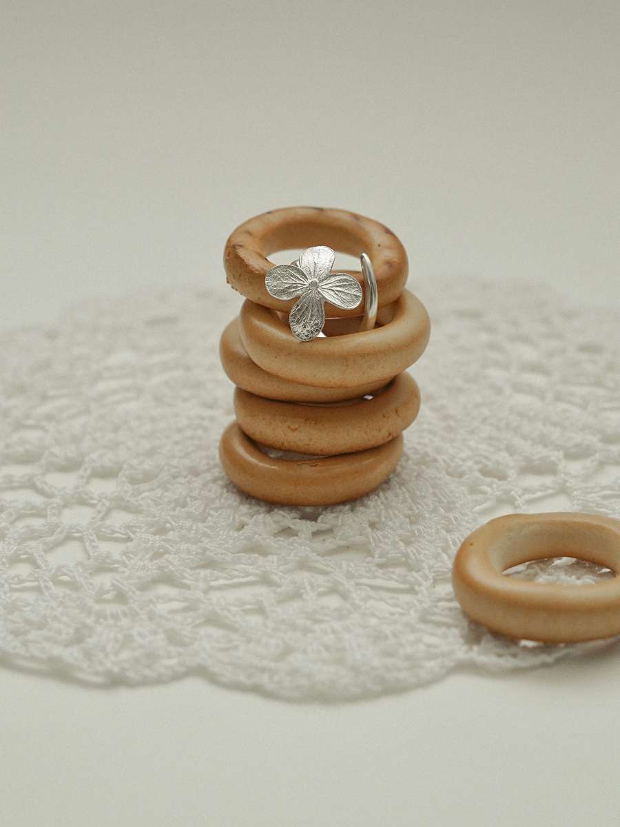 Фактурное разомкнутое кольцо. Выполнено на основе листа облепихи.