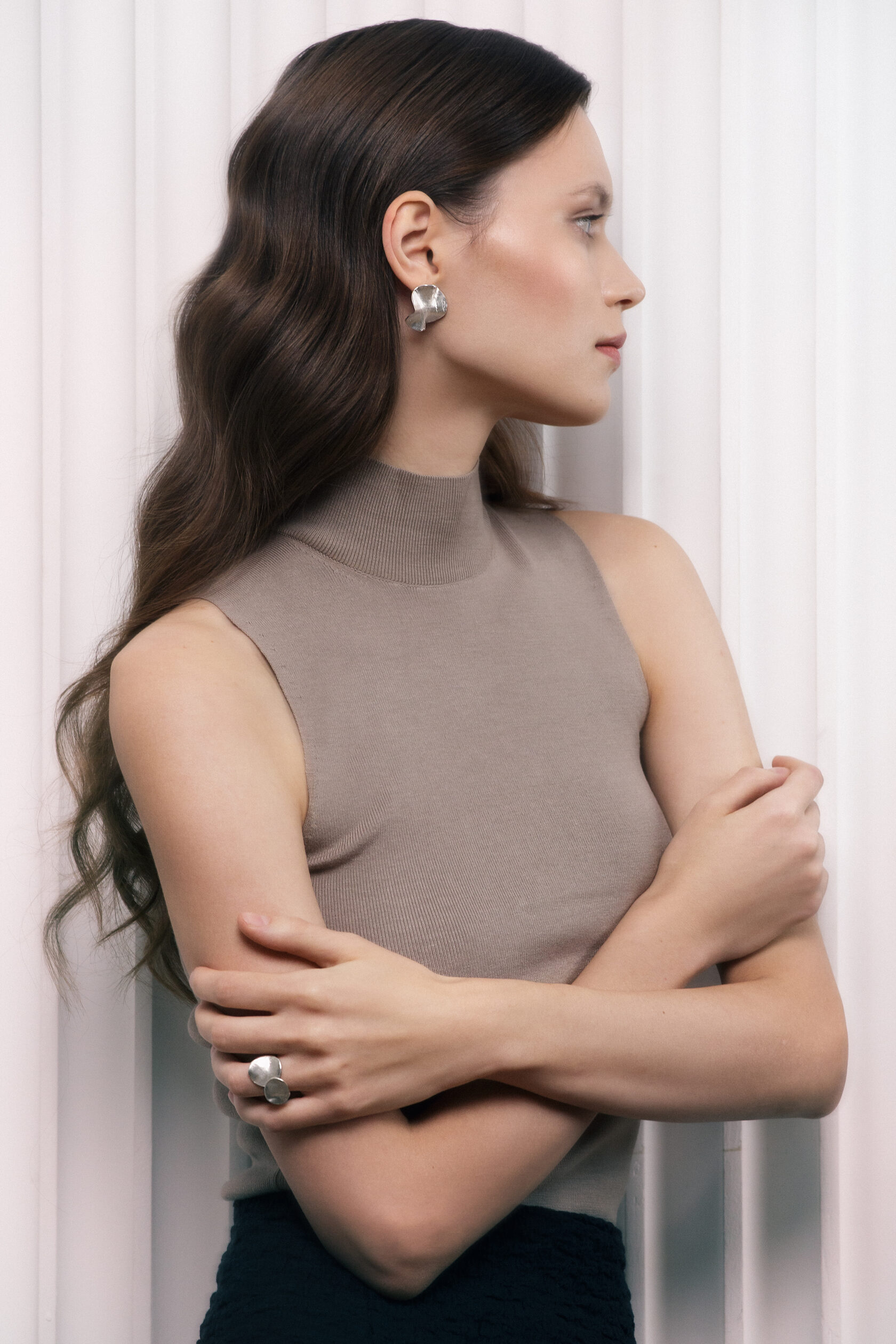 Название коллекции "Тепло" отсылает к тому, как создавался образ этих украшений: каждая модель и каждый отдельный размер колечка из этой линейки проектировались руками по мягкому воску. Под воздействием тепла ладоней воск таял и приобретал анатомичные изгибы, а поглаживающим движением пальцев получилось создать такую гладкую сатиновую поверхность. В результате украшения этой коллекции ощущаются невероятно комфортно, к ним так и тянет прикоснуться