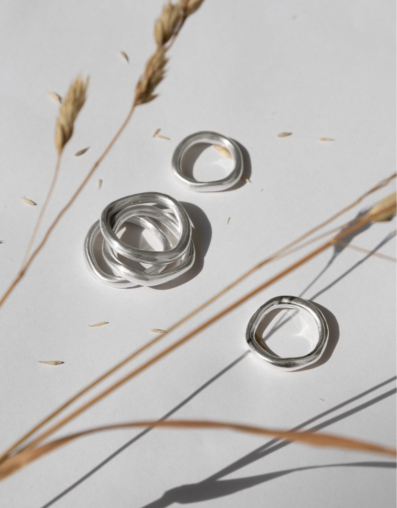 Тонкое серебряное кольцо с неровными контурами. Легкое, невероятно уютное украшение, словно тает от тепла рук. Сатиновая текстура и живые изгибы в лаконичном дизайне. Cтанет вашей идеальной базой на каждый день.