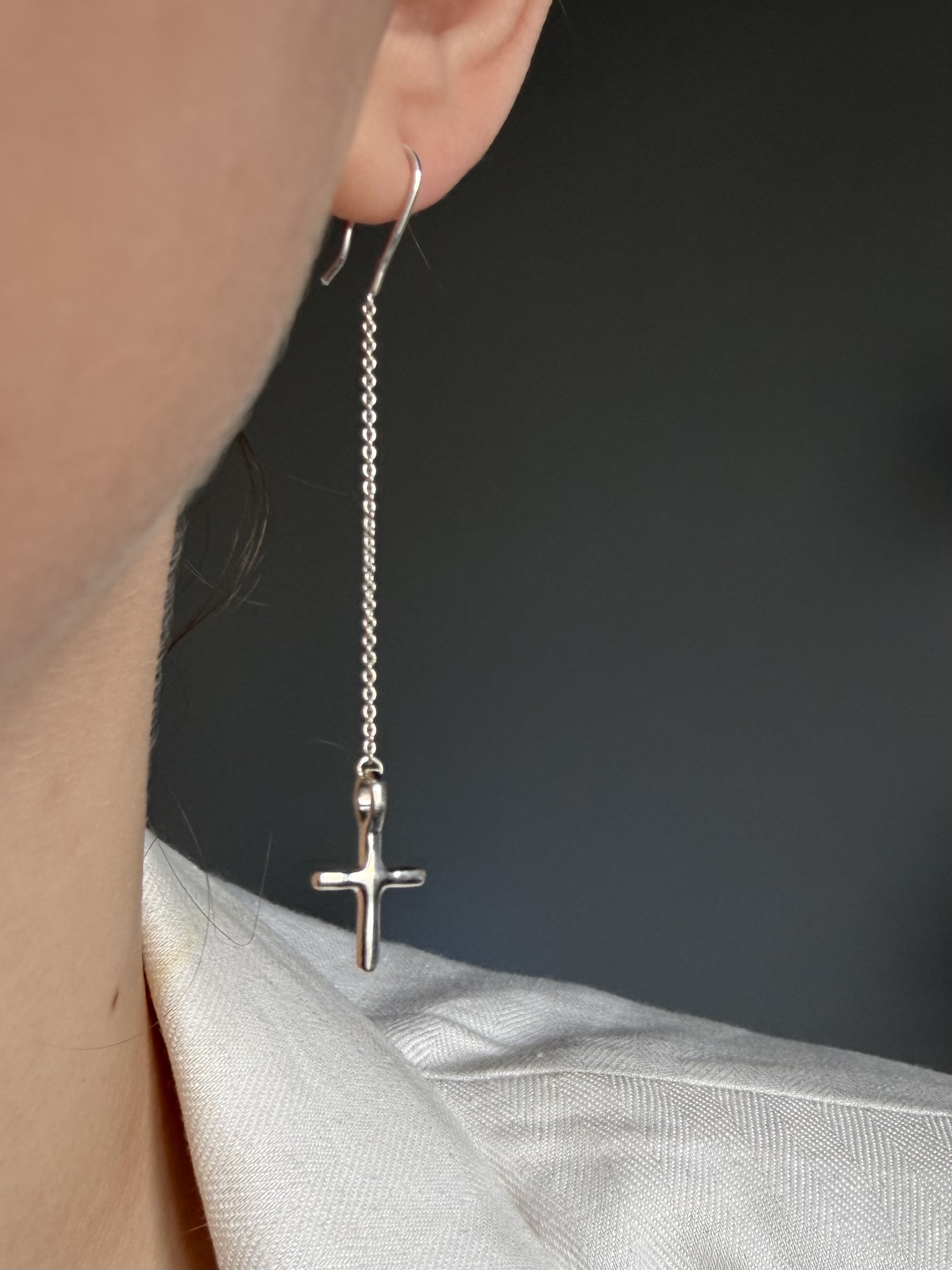 моно-серьга длинная cross tiny