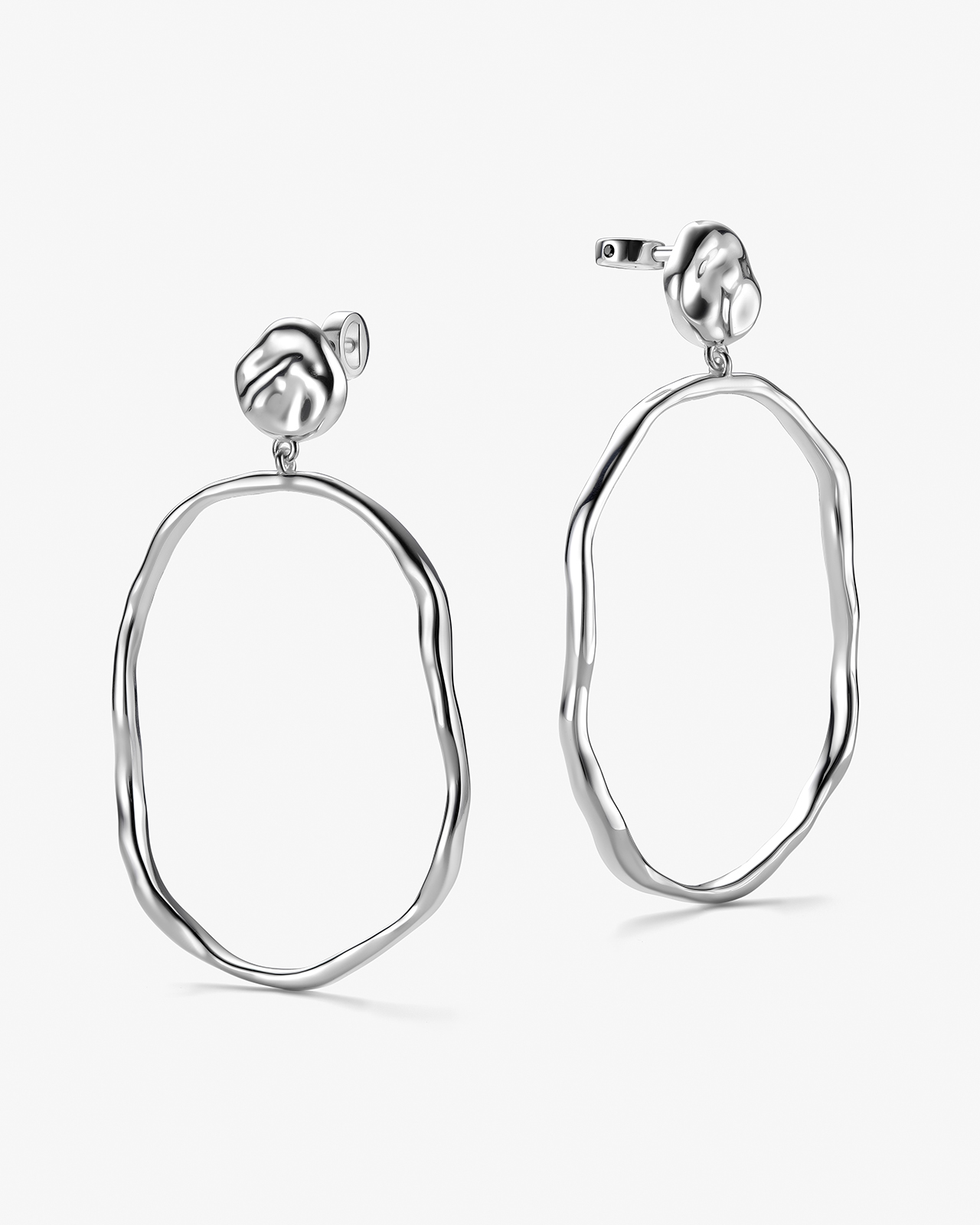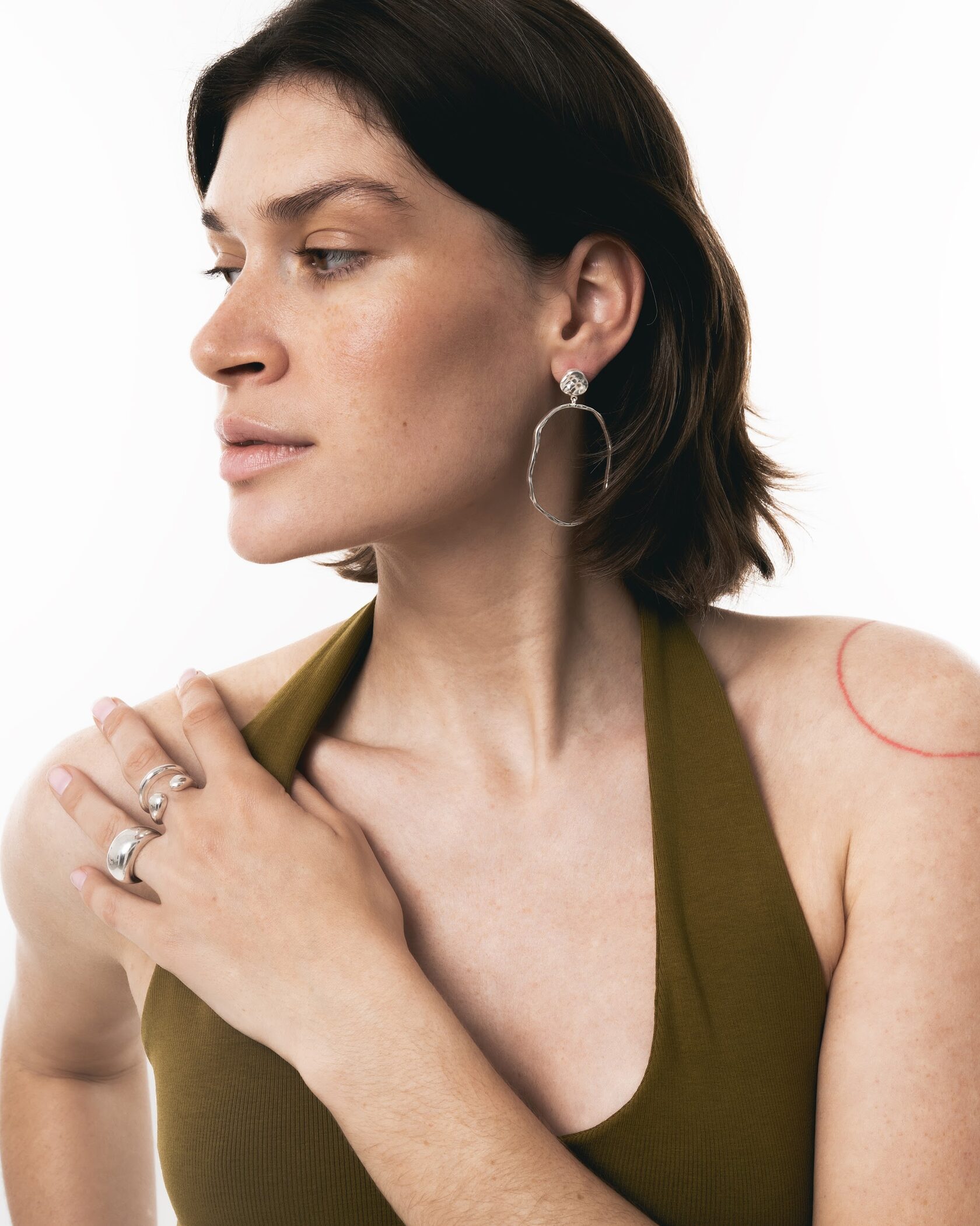 Наши серебряные серьги PEGGY прекрасной неправильно-овальной формы, будто вылеплены вручную. Черный бриллиант в замке. Пегги бы оценила.